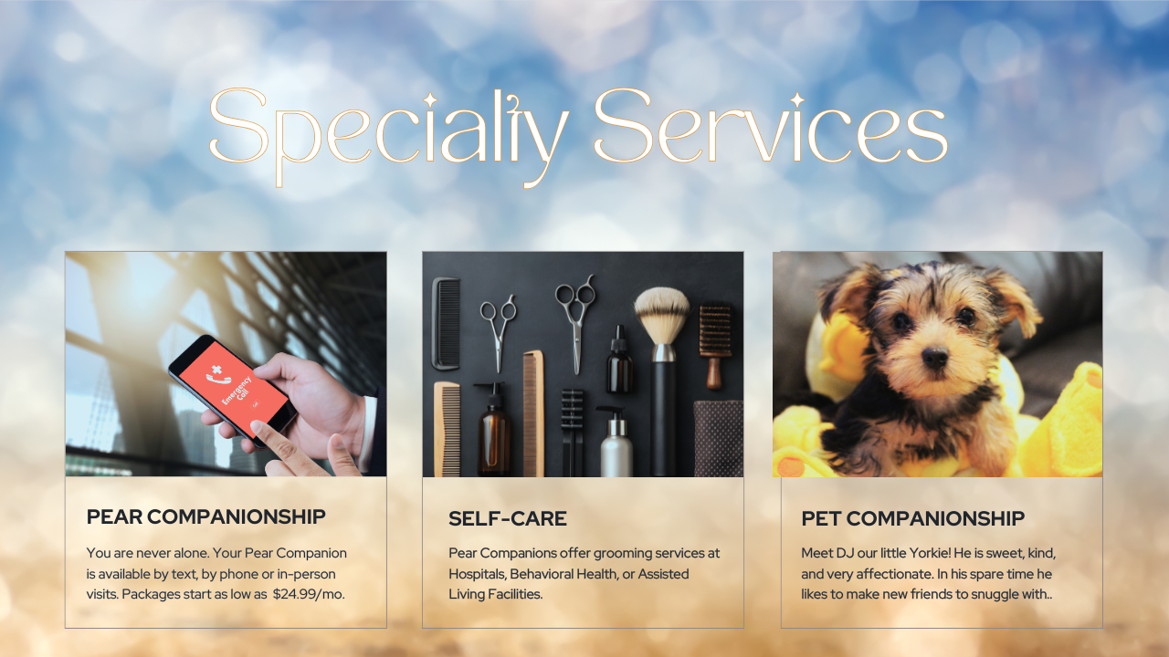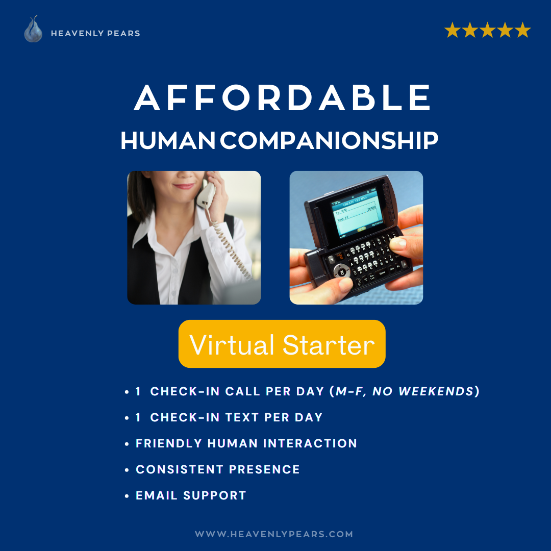 Human connection should never feel automated. Heavenly Pears provides real people, not bots through consistent phone calls and text check-ins that support mental and emotional well-being with consistent warmth, integrity, and kind professionalism.